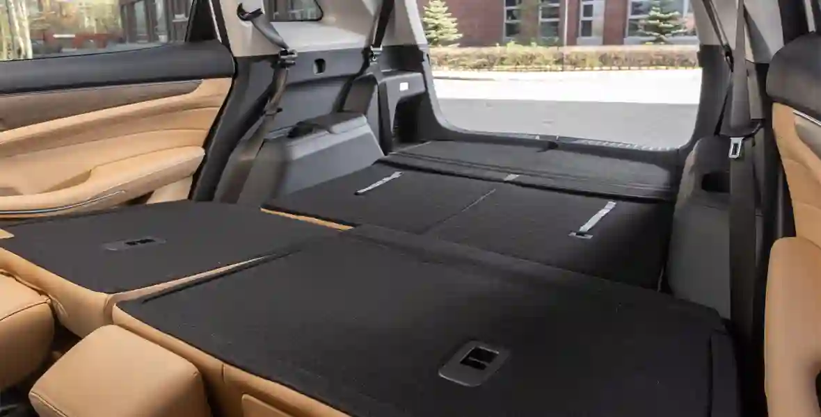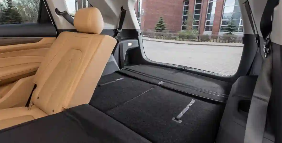 По духу и исполнению EVOLUTE i‑SPACE близок к кроссоверу i‑SKY этой же марки — дешево и сердито, при этом практично и современно. Но если практичность более компактной модели заключается в самокатной простоте конструкции и неисчерпаемой батарее, то козырь i‑SPACE это вместимость. Здесь есть третий ряд — пусть и не полноценный, но вполне функциональный. К слову, соплатформенный Aito M7 на 26 сантиметров длиннее, но едва ли удобнее для пассажиров багажника — там так же тесно.
