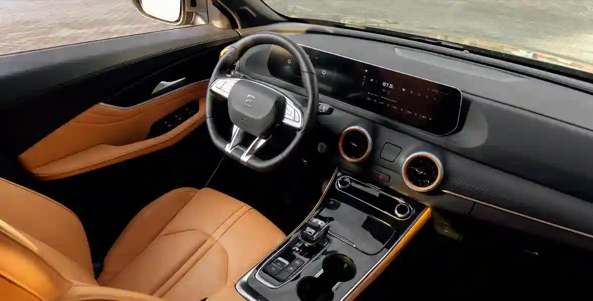 В салоне наведен лоск и порядок. Тут обращают на себя внимание авангардные элементы интерьера типа стилизованных звезд на стекле панорамной крыши и вставок под хрусталь в рукояти селектора трансмиссии. Причем элементы салона хорошо подогнаны, сочетания фактур и цветовых оттенков удачны, да и эргономика в целом на высоте. Кластер 10,25-дюймовой приборной панели и медиацентра информативен, графика хороша – к примеру, медиацентр воспроизводит видео в высоком разрешении. Можно придраться разве что к тому, что обод D-образного руля частично перекрывает верхний сектор цифровой приборки, а у модных передних сидений с интегрированными подголовниками коротковаты подушки. Зато «зимний» пакет обширен (подогрев передних сидений, руля, лобового стекла и форсунок омывателя).