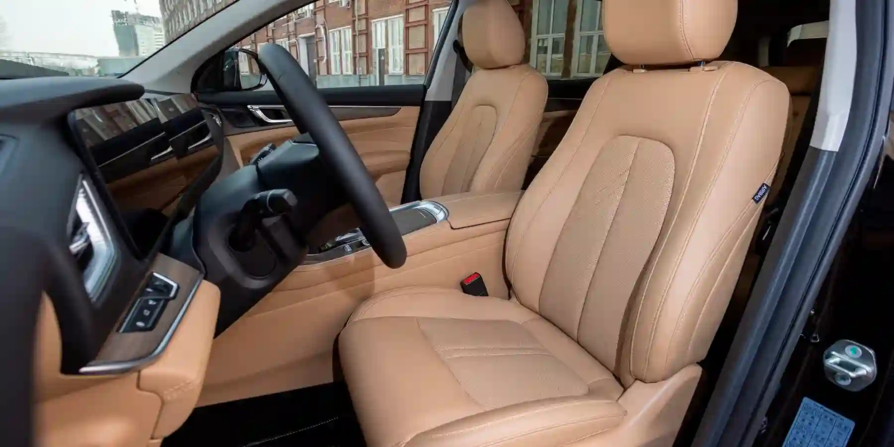 Отделка и эргономика компромиссные: дверная карта из жёсткого пластика, центральный раскладной подлокотник коротковат — рука попадает чётко на твёрдый подстаканник. Зато имеются дефлекторы обдува, плафоны подсветки с двух сторон и USB-розетка под защитной крышкой. Увы, слот Type-A только один на всех задних пассажиров.